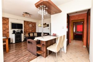 • Salon z otwartą kuchnią z oknem