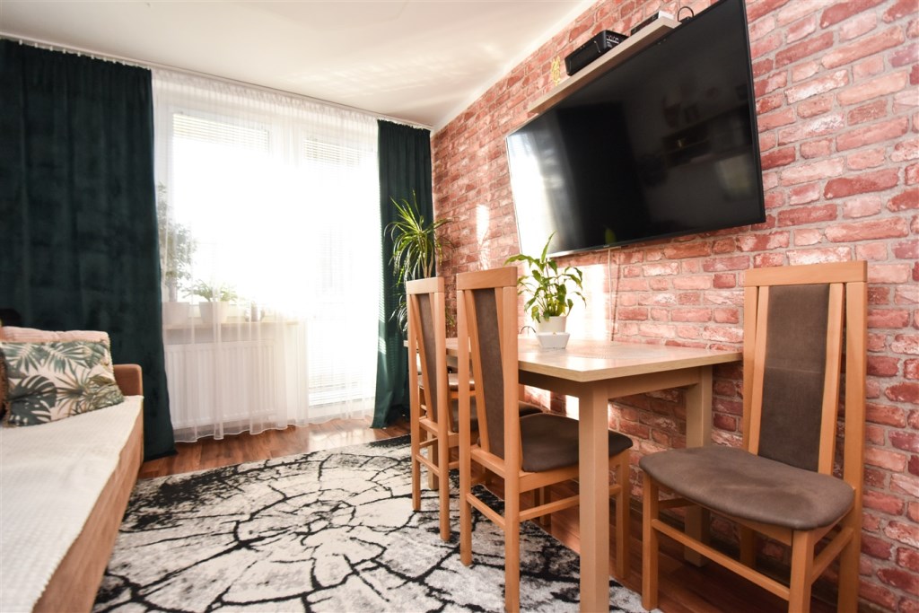 Przestronne, słoneczne dwupokojowe mieszkanie położone na 1 piętrze w niskim bloku. Duża ilość miejsca parkingowego przed budynkiem bezpośrednio dla mieszańców. Budynek jest po termomodernizacji. Mieszkanie do wprowadzenia – częściowo umeblowane. Na ścianach zrobione gładzie. Ogrzewanie oraz ciepła woda z sieci miejskiej. Zabudowa kuchenna wraz ze sprzętami AGD. W pokoju pojemna szafa. Mieszkanie posiada dobudowany balkon (jest to ogromny atut, ponieważ nie wszystkie mieszkania w bloku je posiadają).