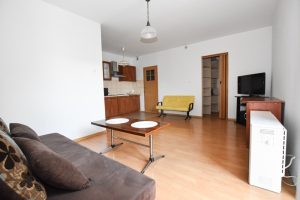 Kawalerka gotowa do zamieszkania, zlokalizowana na pierwszym piętrze w niskim bloku z cegły. W salonie znajduje się wyjście na balkon francuski, który to wychodzi na dziedziniec, co zapewnia ciszę. Na wyposażeniu pralka, mieszkanie wymaga nowej kuchenki. W kawalerce znajduje się również pojemna garderoba. Budynek po termomodernizacji. Wymagany najem okazjonalny ze wskazaniem lokalu zastępczego na terenie kraju.