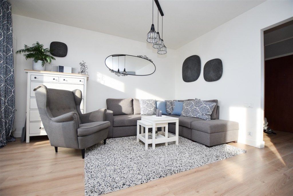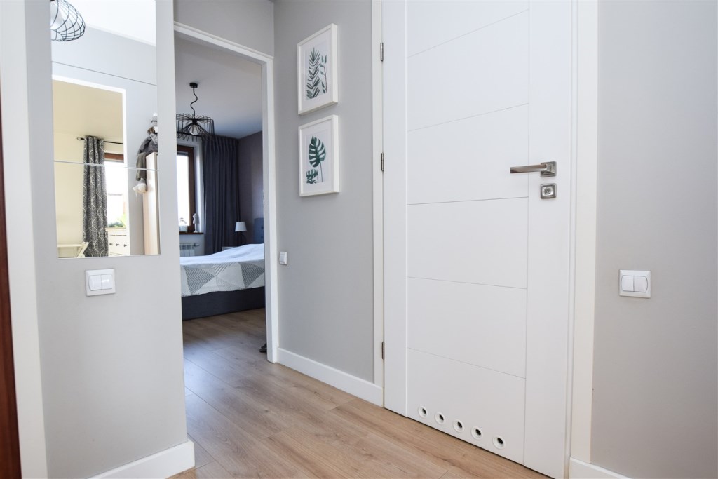 Przytulne, dwupokojowe mieszkanie położone na drugim piętrze w niskim bloku z 2021 roku. Czysta, zadbana klatka schodowa, blok po termomodernizacji. Mieszkanie do wprowadzenia, niewymagające wkładu finansowego. Mieszkanie częściowo wyposażone i gotowe do zamieszkania, wykończone w wysokim standardzie z dbałością o szczegóły. Kuchnia zabudowana meblami na wymiar, wyposażona w sprzęty AGD – płytę gazową, zmywarkę, lodówkę, piekarnik i okap. Mieszkanie bezczynszowe! Ogrzewanie oraz ciepła woda z pieca gazowego dwufunkcyjnego. Do zakupu obligatoryjny zakup garażu znajdującego się w bryle budynku wraz z komórką lokatorską. Na terenie osiedla przynależne również zewnętrzne miejsce postojowe.
