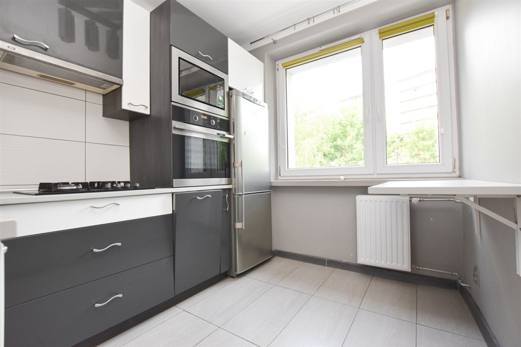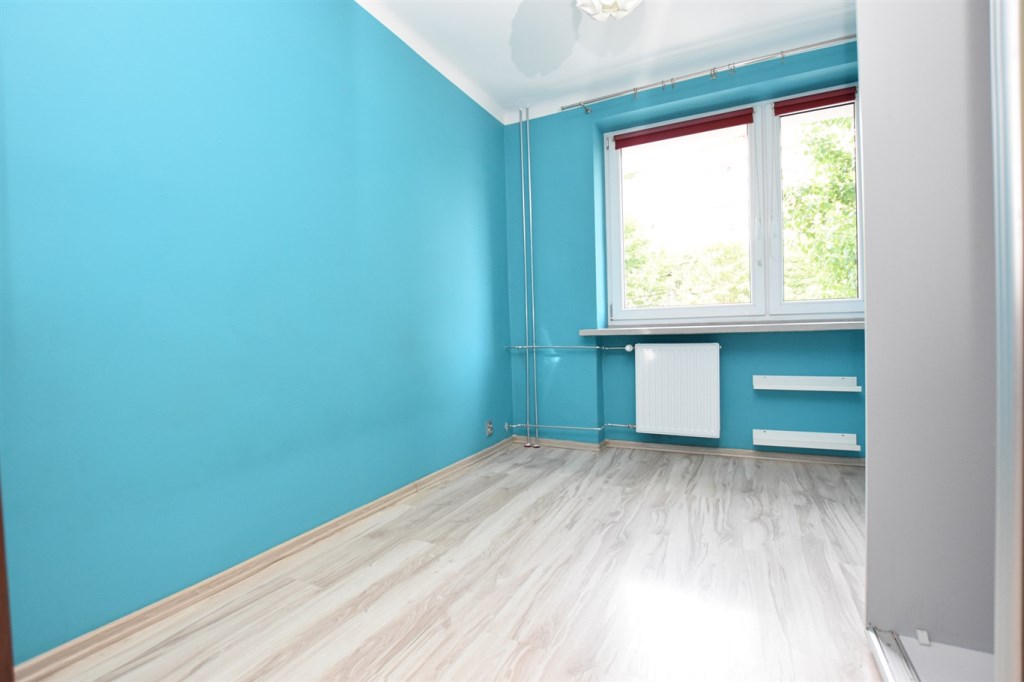 Dwupokojowe, przestronne mieszkanie położone na pierwszym piętrze w czteropiętrowym bloku. Budynek jak i teren wokół bardzo zadbany. Czysta, zadbana klatka schodowa, po remoncie. W mieszkaniu gładzie na ścianach oraz wymieniona instalacja elektryczna. Mieszkanie częściowo umeblowane. W pokoju dziecięcym duża szafa w zabudowie. Kuchnia wyposażona w zmywarkę, piekarnik, mikrofalę oraz płytę gazową.