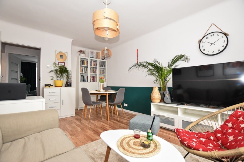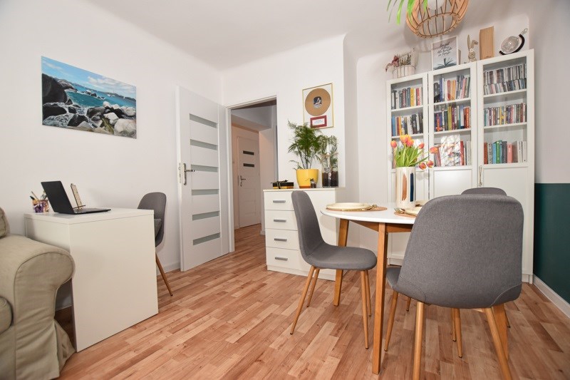 Jasne, dwupokojowe mieszkanie położone na czwartym piętrze w bloku czteropiętrowym. Czysta, zadbana klatka schodowa. Blok po termomodernizacji. Mieszkanie przeszło generalny remont, wymienione wszystkie instalacje. Duże pokoje, z wnękami. Przedpokój z zabudową, miejscem na przechowywanie.