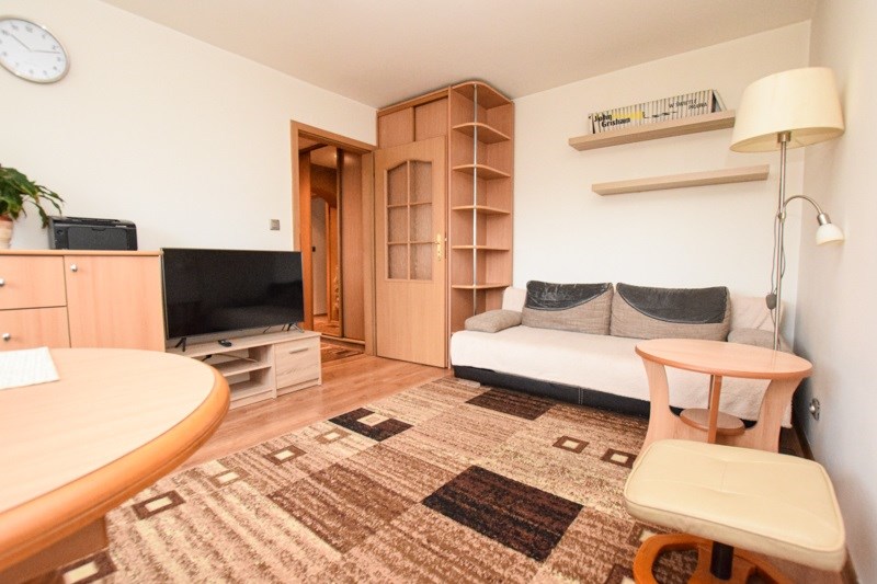 Dwupokojowe mieszkanie położone na piątym piętrze w wysokim, dziesięciopiętrowym bloku po termomodernizacji. Widok na panoramę miasta. Mieszkanie, w którym można mieszkać, gładzie na ścianach. W mieszkaniu pozostaje wszystko.