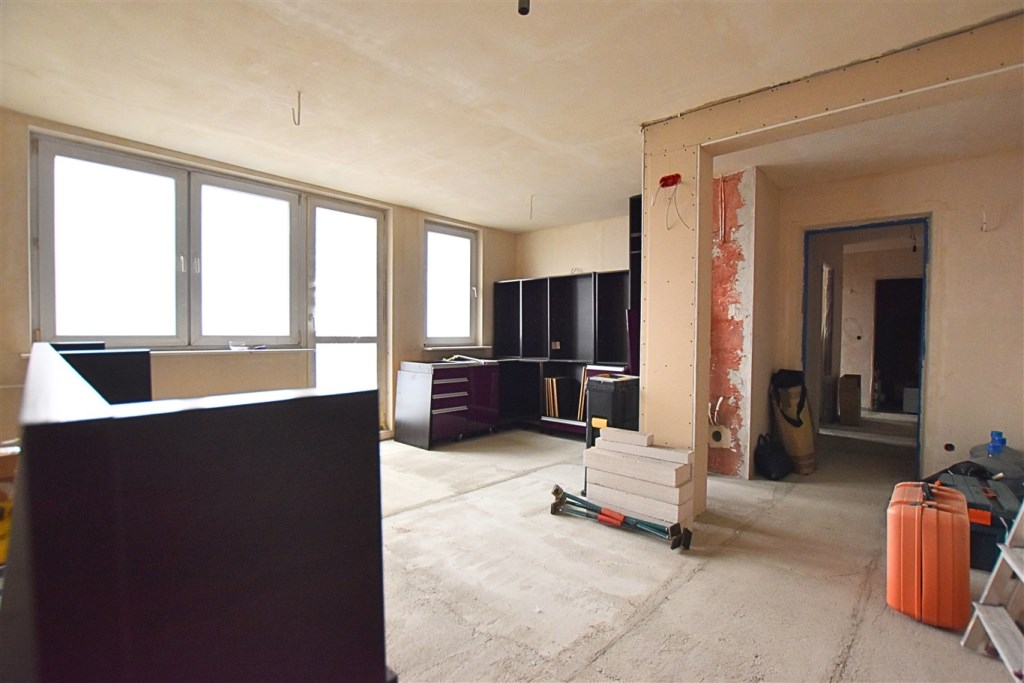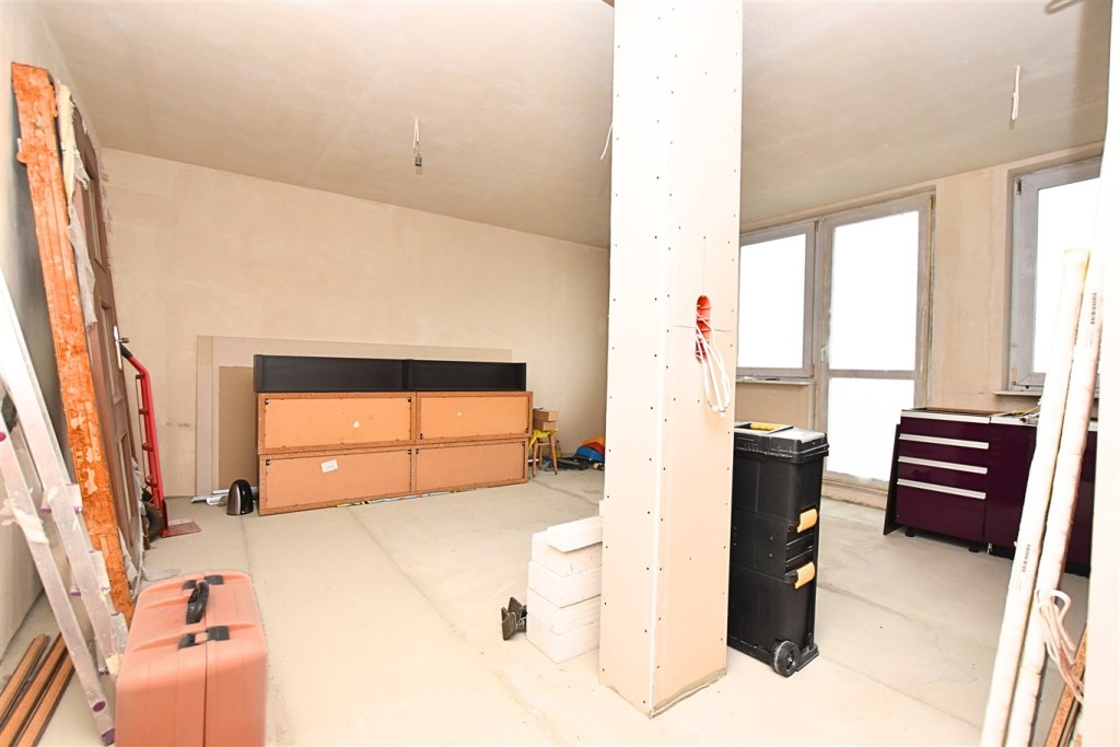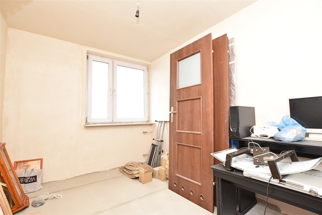 Trzypokojowe mieszkanie położone na szóstym piętrze w wysokim, dziesięciopiętrowym bloku po termomodernizacji. Wymienione piony WOD – KAN oraz instalacja elektryczna. Czysta, zadbana klatka schodowa, zielona okolica. Mieszkanie w trakcie remontu. Kluczowe prace takie jak wymiana instalacji czy położenie tynków zostały wykonane.