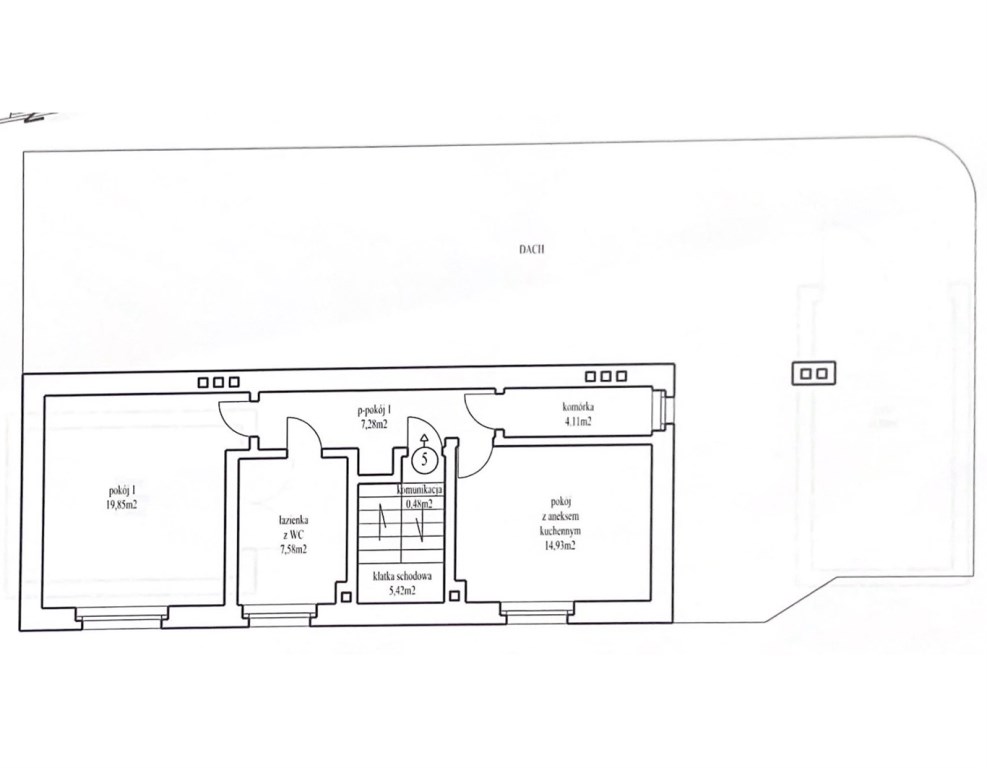 Dwupokojowe mieszkanie położne na drugim piętrze w dwupiętrowym budynku. Mieszkanie jest do generalnego remontu – własna aranżacja. Dach budynku został wymieniony. Do mieszkania przynależy piwnica oraz ogródek. Budynek jest ogrodzony.