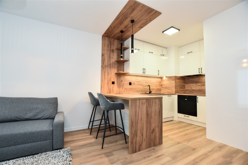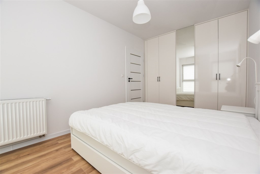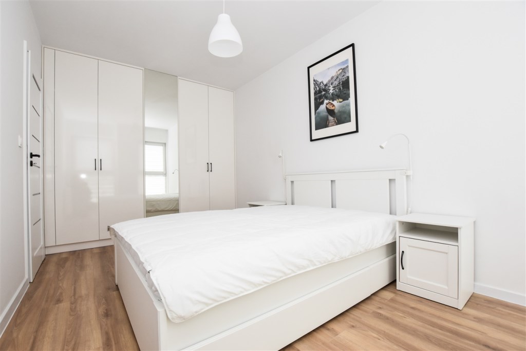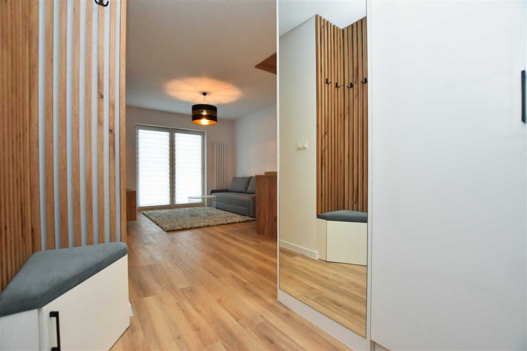 Przestronne, dwupokojowe mieszkanie znajdujące się na pierwszym piętrze w nowo powstałym apartamentowcu z windą. Mieszkanie w pełni wyposażone, wszystkie meble oraz sprzęty są nowe. Kuchnia wyposażona w sprzęty AGD wysokiej klasy – lodówkę, zmywarkę, płytę indukcyjną, okap. W części salonowej zamontowany jest duży telewizor 65 cali, łazienka wyposażona w nową pralkę. Mieszkanie wynajmowane wraz z miejscem postojowym w garażu podziemnym oraz z komórką lokatorską!