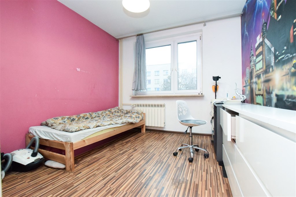 Dwustronne, trzypokojowe mieszkanie z balkonem, położone na pierwszym piętrze w czteropiętrowym bloku po termomodernizacji. Mieszkanie do odświeżenia, z ogrzewaniem miejskim. Czysta, zadbana klatka schodowa.