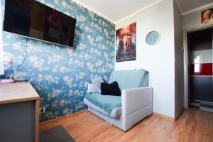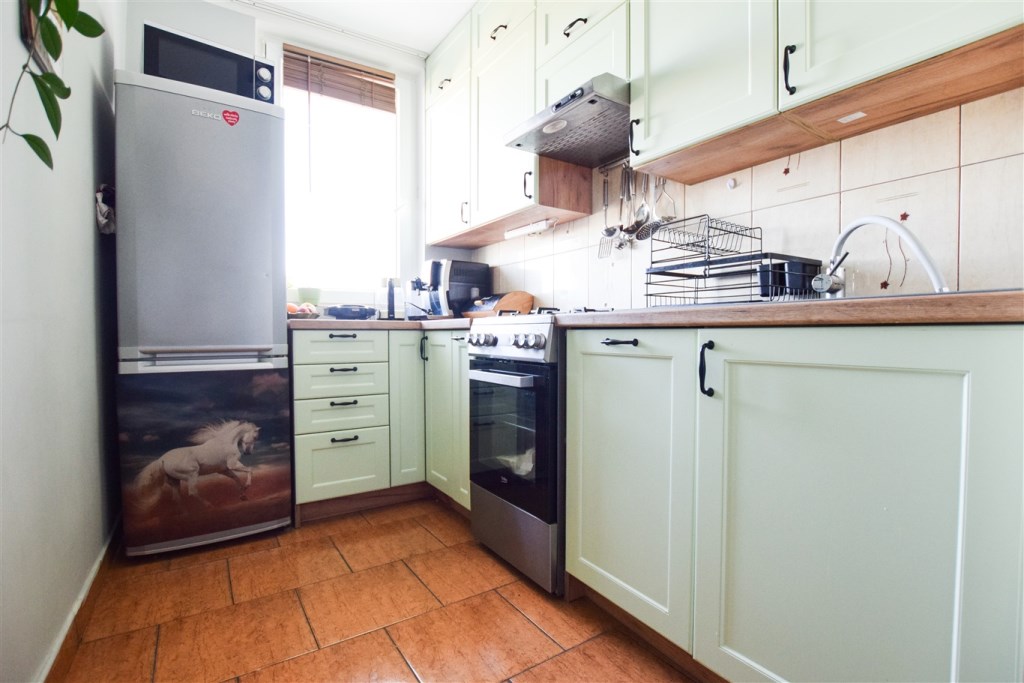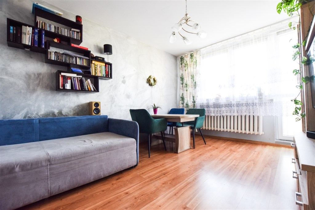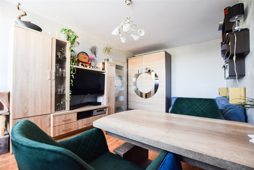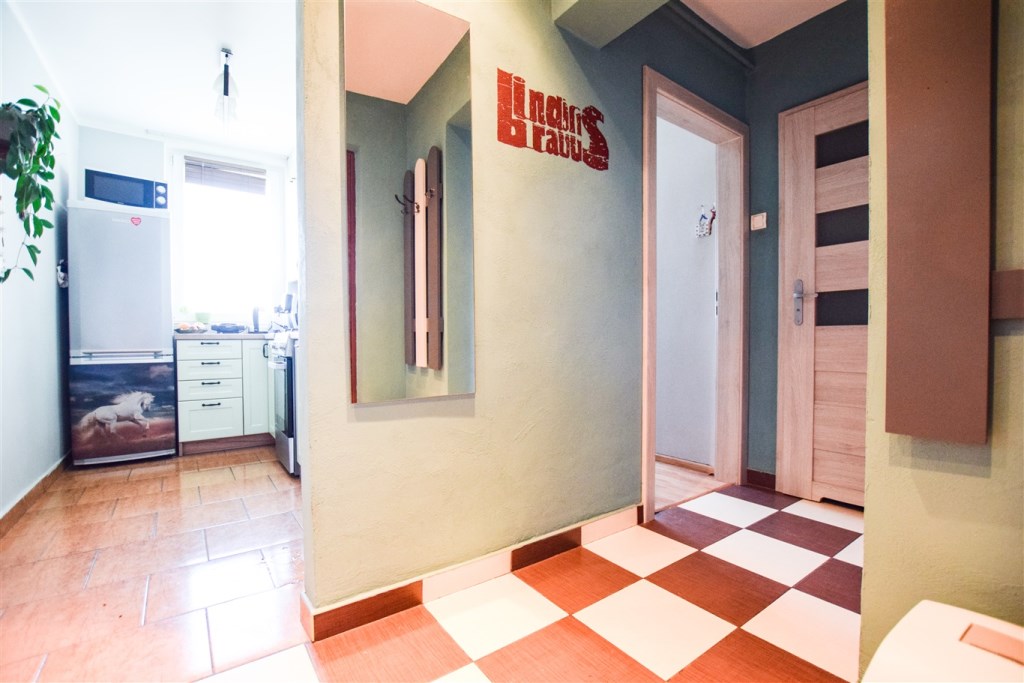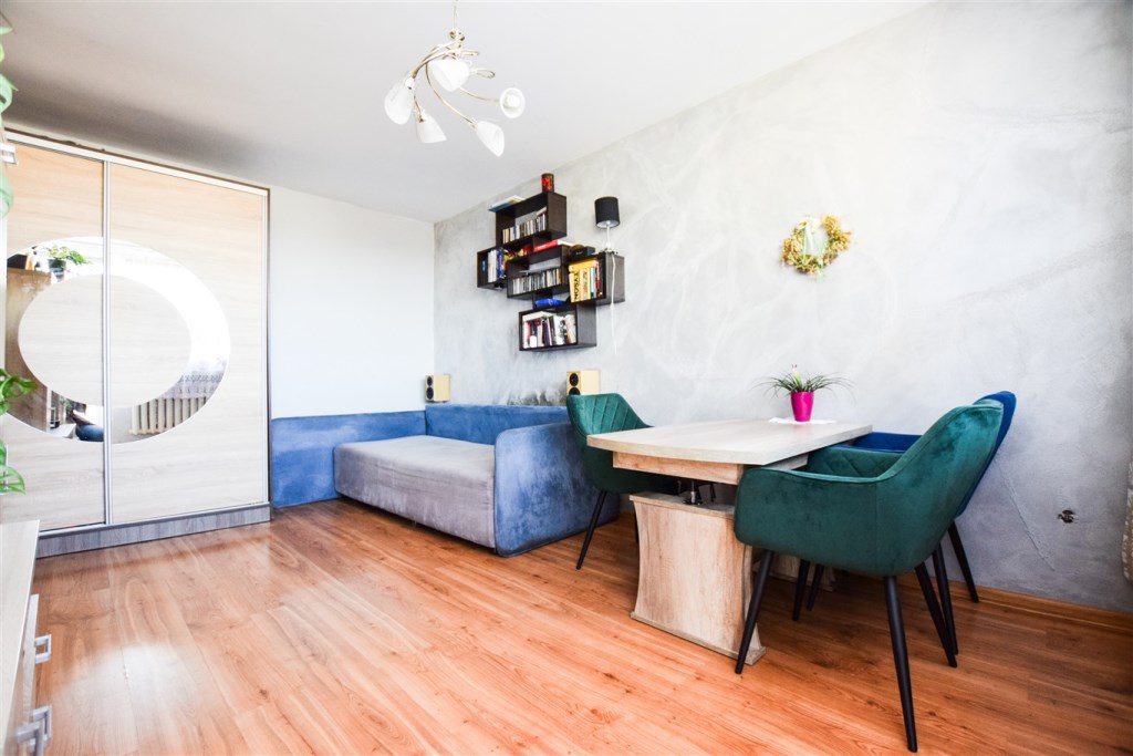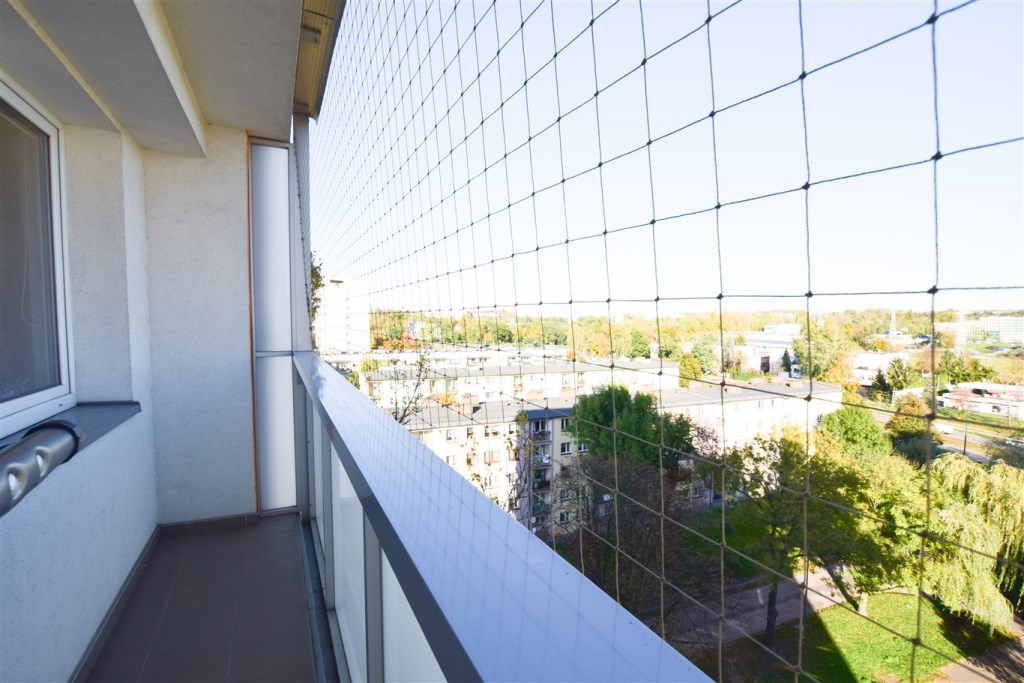 Przestronne, słoneczne dwupokojowe mieszkanie położone na 8 piętrze w wysokim bloku z windą. Duża ilość miejsca parkingowego przed budynkiem bezpośrednio dla mieszańców. Budynek jest świeżo po termomodernizacji. Klatka schodowa zamykana dla 4 mieszkań. Mieszkanie do wprowadzenia – częściowo umeblowane. Na ścianach zrobione gładzie. Ogrzewanie z sieci miejskiej, ciepła woda z piecyka gazowego. Zabudowa kuchenna wykonana na wymiar. W Przedpokoju pojemna szafa w zabudowie. Z balkonu piękny widok na panoramę i tereny zielone. Istnieje możliwość dzierżawy (wraz z sąsiadem) pomieszczenia gospodarczego znajdującego się na strychu budynku o powierzchni 13,34 m2.
