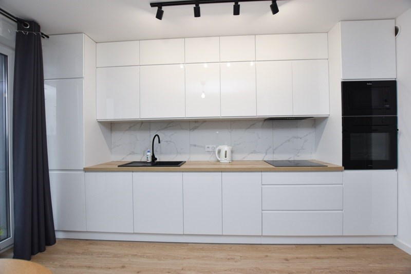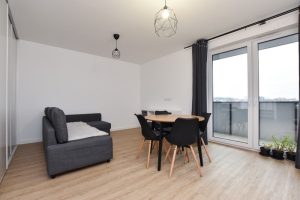 • Salon z  aneksem kuchennym i wyjściem na balkon (możliwość zagospodarowania strefy dzień/noc)