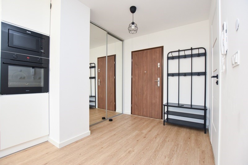 Kawalerka położona na czwartym piętrze w pięciopiętrowym apartamentowcu z 2021 roku.  Czysta, zadbana klatka schodowa, zielona okolica. Do wprowadzenia. Kameralne osiedle, zamknięte, zabezpieczone bramą wjazdową i domofonem.