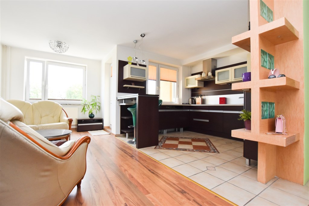 • Salon połączony z kuchnią i z wyjściem na balkon