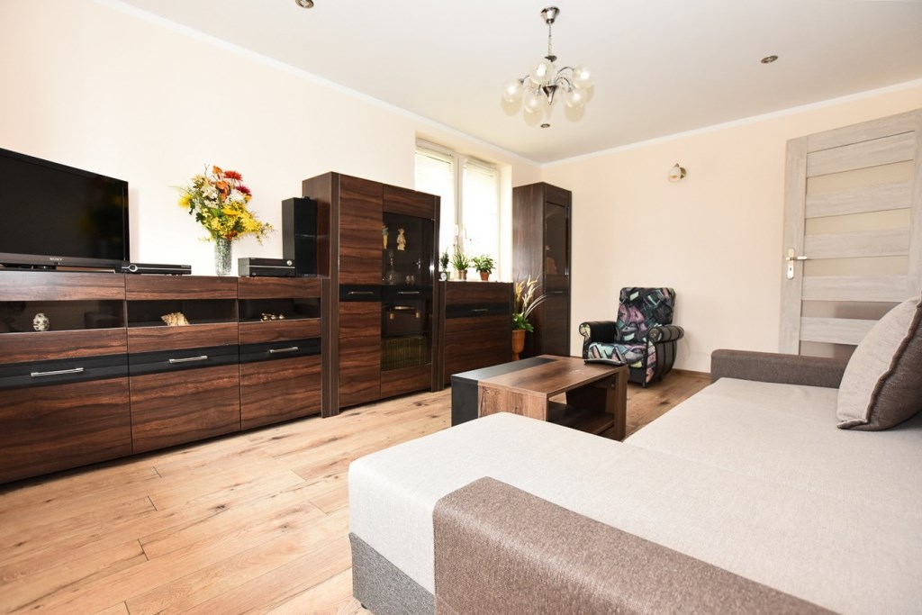 Trzypokojowe, przestronne, słoneczne mieszkanie położone na drugim piętrze w wysokim bloku. Czysta, zadbana klatka schodowa, zielona okolica. Po remoncie są dwa, z trzech pokoi, kuchnia oraz łazienka . Do remontu został jeden pokój wraz z przedpokojem. Blok ocieplony, duża ilość miejsca parkingowego przed budynkiem. Preferowana zamiana na mniejsze – 2 pokojowe mieszkanie z dopłatą.