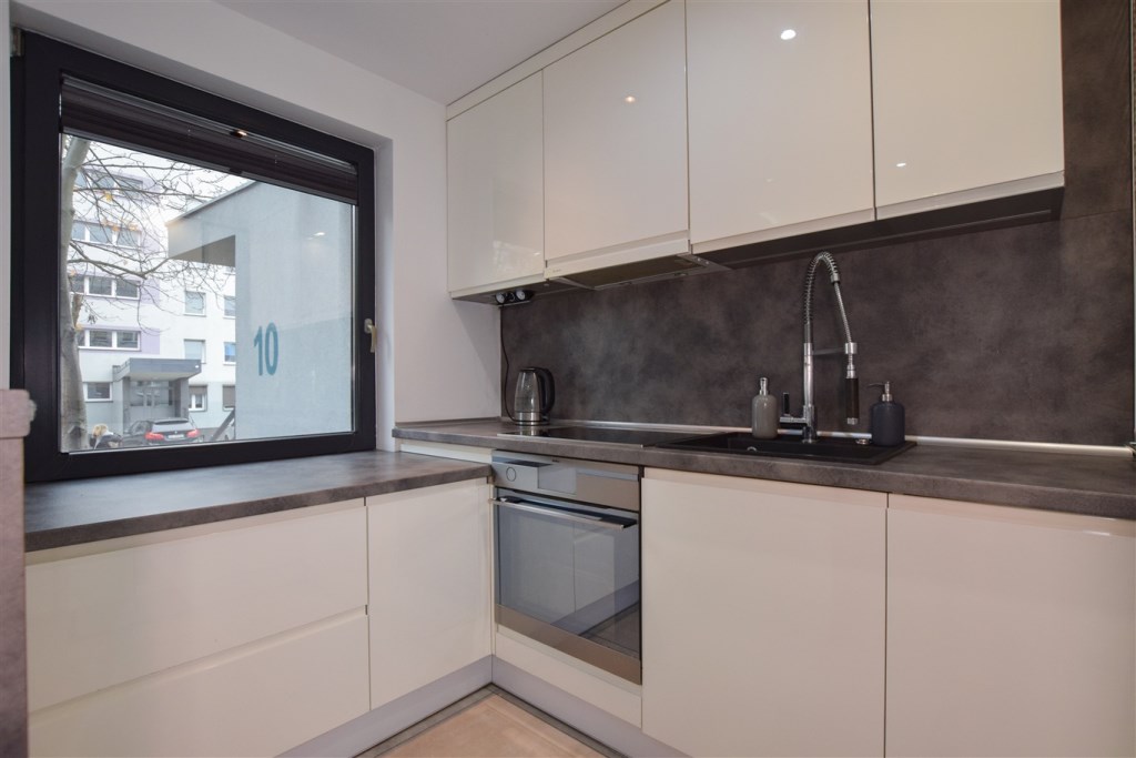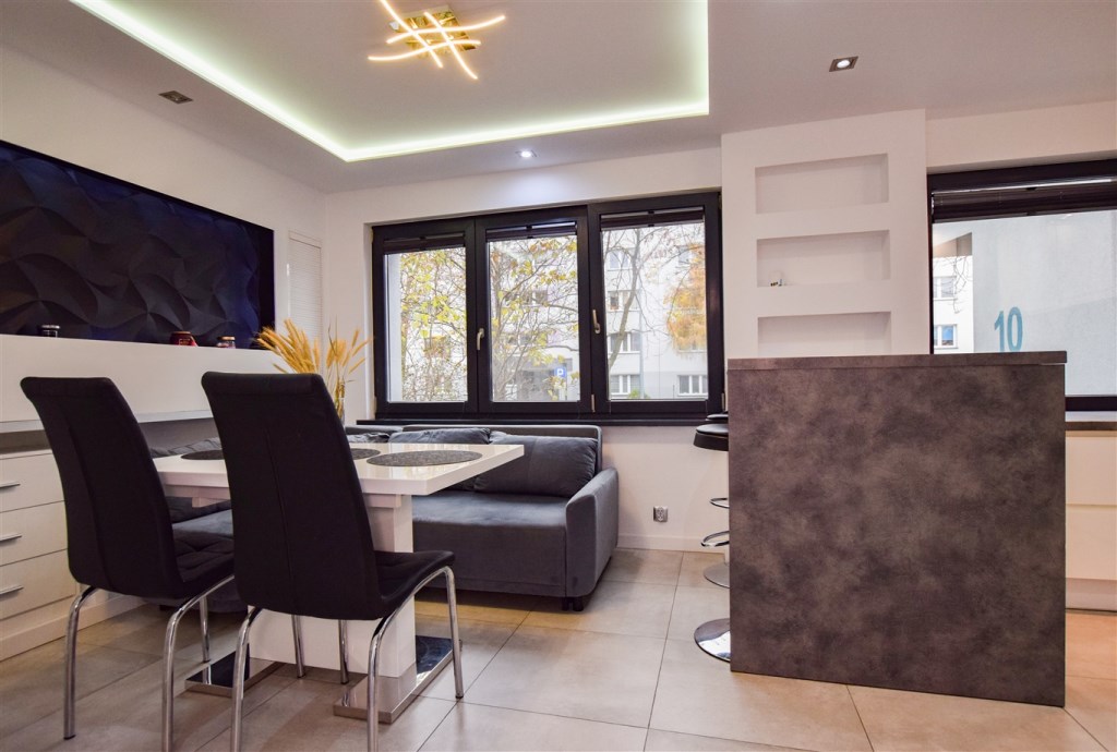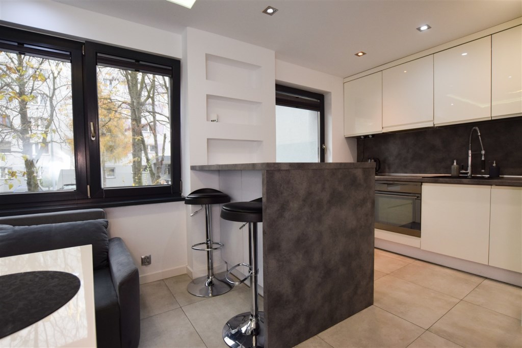 Dwupokojowe, przestronne, słoneczne mieszkanie położone na wysokim parterze w niskim bloku czteropiętrowym. Czysta, zadbana klatka schodowa, zielona okolica. Mieszkanie do wprowadzenia, bez nakładów finansowych, wykończone w wysokim standardzie. Kuchnia wyposażona w sprzęty AGD (lodówka, zmywarka, piekarnik, płyta indukcyjna).