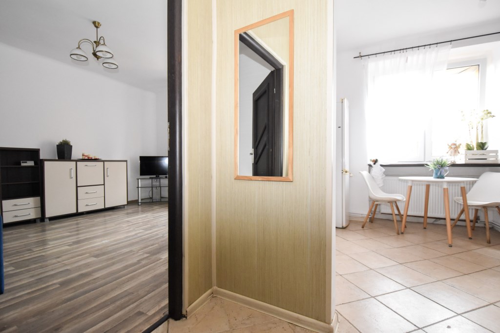 Słoneczna, duża i przytulna kawalerka  położona na parterze, znajdująca w niskim budynku po termomodernizacji. Czysta, zadbana klatka schodowa. Zielony teren wokół budynku oraz duża ilość miejsc parkingowych. Do mieszkania przynależy ogródek, który może zostać zagospodarowany do własnych potrzeb. Mieszkanie jest w pełni nadające się do zamieszkania, a jednocześnie stanowi świetną bazę do remontu i aranżacji według własnego gustu. To idealna opcja zarówno dla osób, które chcą wprowadzić się od razu, jak i dla tych, którzy marzą o stworzeniu przestrzeni dopasowanej do własnych potrzeb i stylu.
