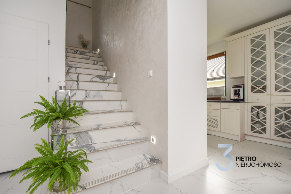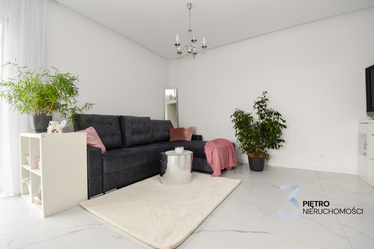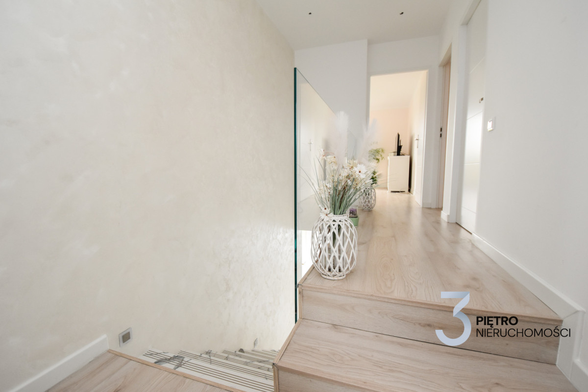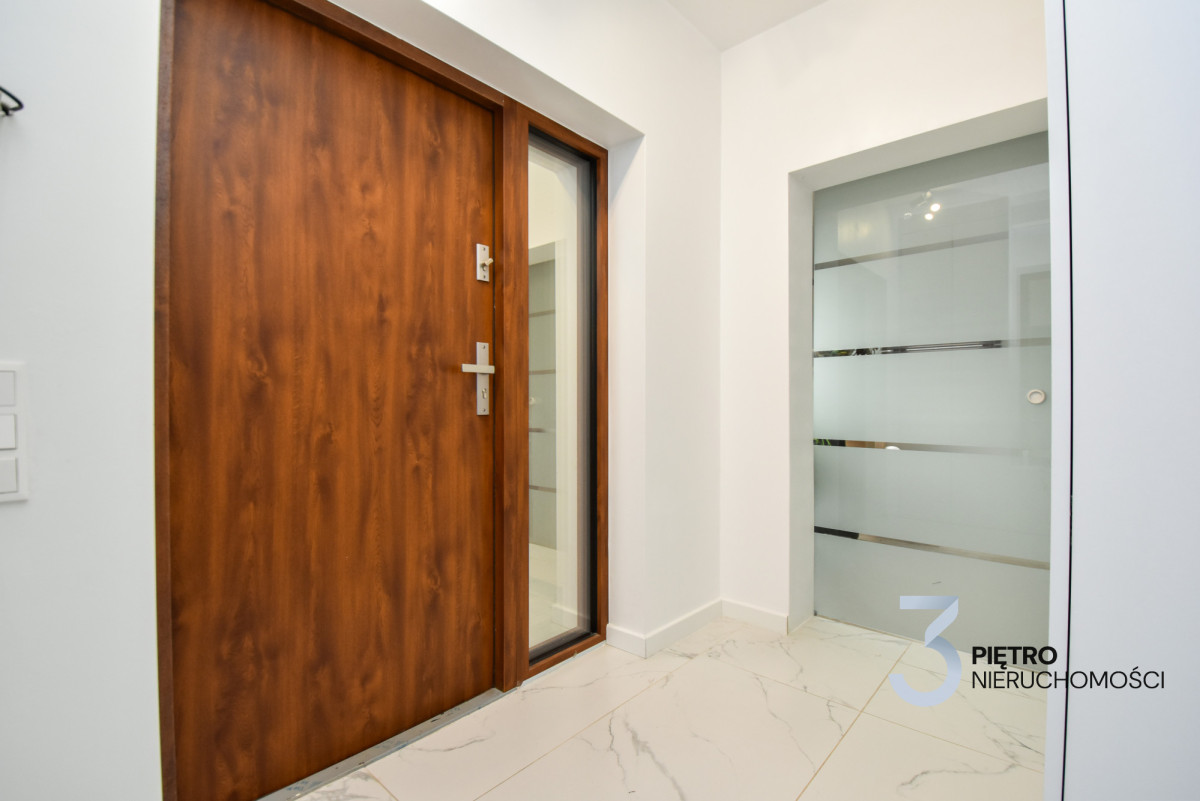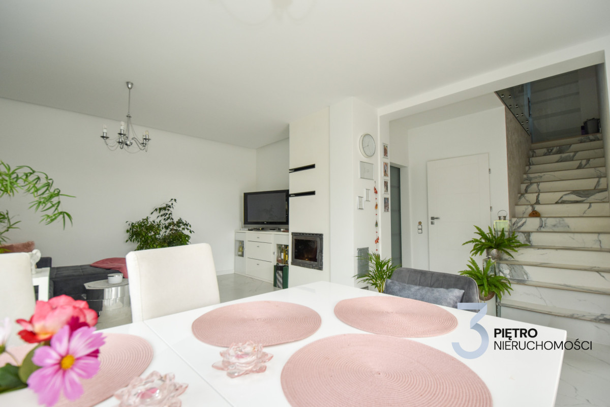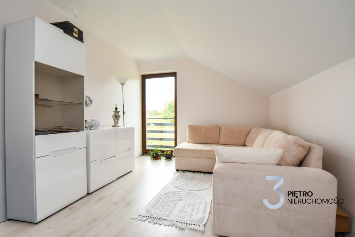 Budynek ocieplony został styropianem o grubości 20 cm, dach pokryty blachodachówką, a trzyszybowe okna zapewniają komfort i energooszczędność - w salonie zastosowano nowoczesny system przesuwny z wyjściem na taras. Działka o powierzchni 450 m² jest w pełni ogrodzona i zagospodarowana, z podjazdem wyłożonym kostką brukową oraz możliwością wykonania dodatkowego zadaszenia.