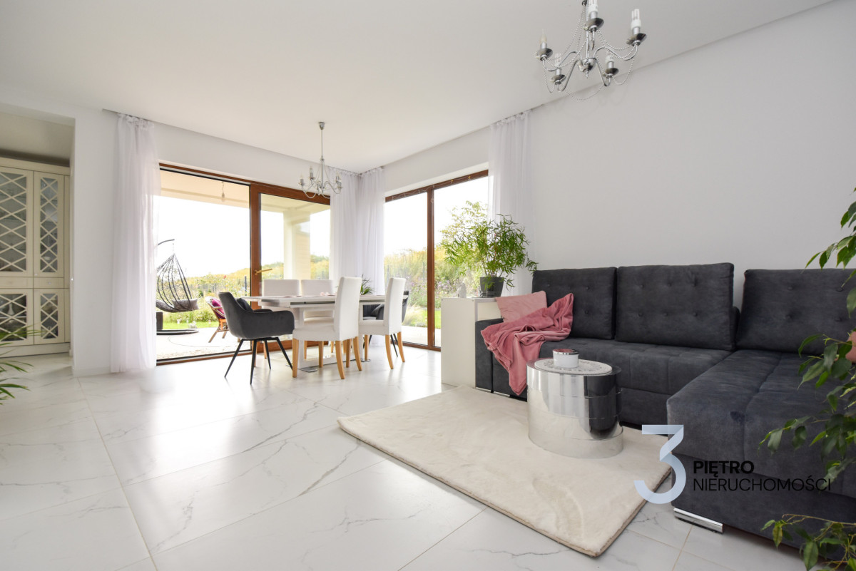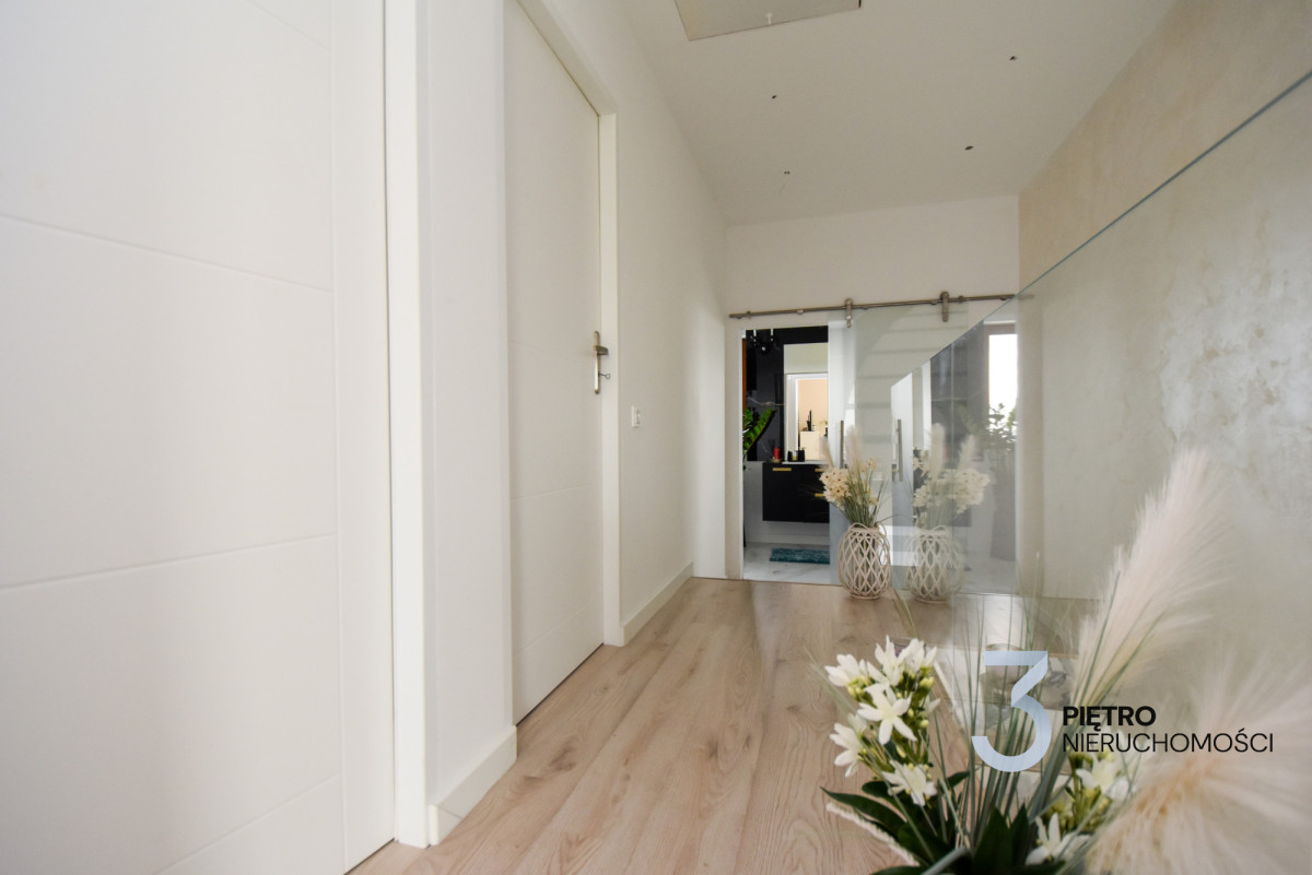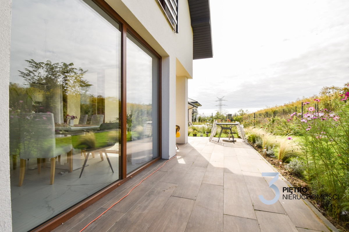Na posesji znajduje się garaż. Dom łączy nowoczesne technologie, funkcjonalny układ i atrakcyjną lokalizację, tworząc idealne miejsce do zamieszkania.