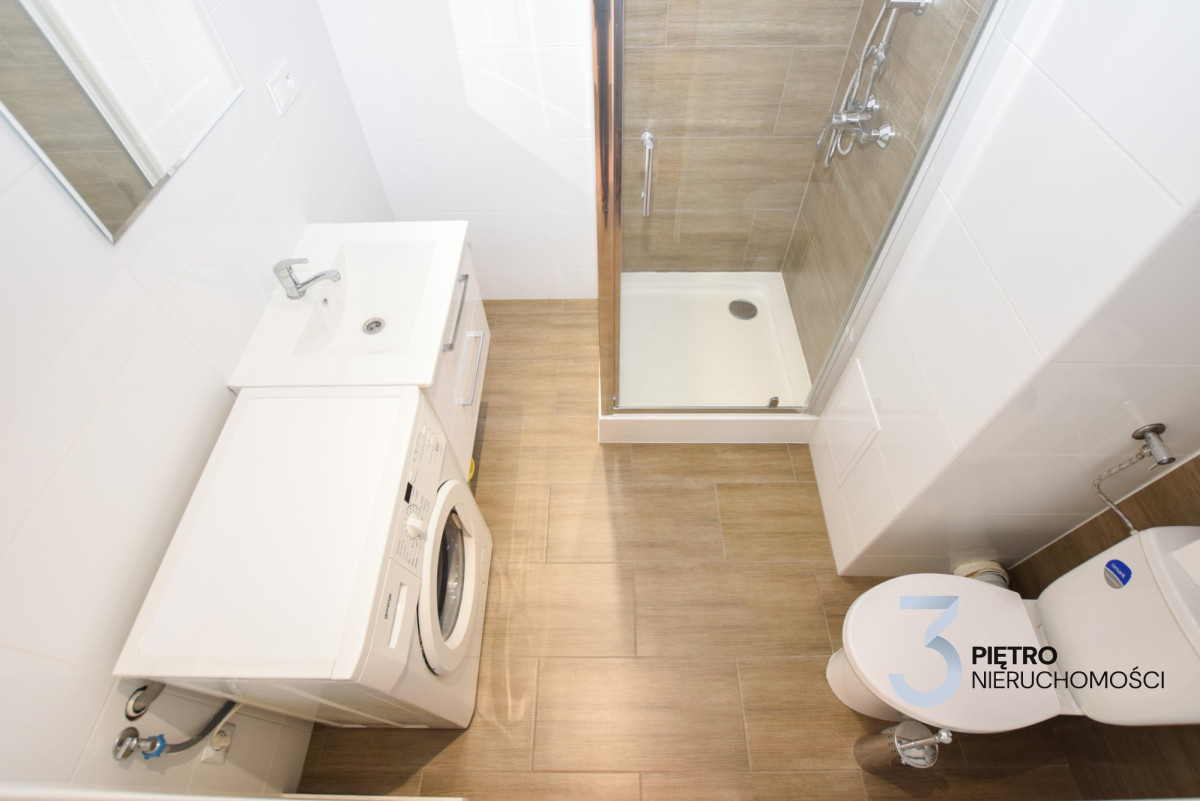 MIESZKANIE Funkcjonalna kawalerka po remoncie usytuowana na czwartym piętrze w sześciopiętrowym bloku. Mieszkanie jest gotowe do wprowadzenia bez dodatkowych nakładów finansowych. Składa się z dużego, ustawnego pokoju z możliwością wydzielenia drugiego pomieszczenia poprzez postawienie ścianki działowej, oddzielnej kuchni, przedpokoju oraz łazienki z WC. Z pokoju jest wyjście na bardzo duży balkon rozciągający się na szerokość całego mieszkania.